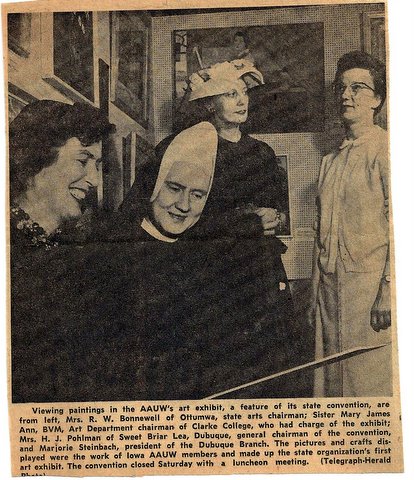 Clipping from Dubuque Telegraph Herald c 1957 October 8, 2011 414 × 480 Salvaged Memories Clipping from Dubuque Telegraph Herald, 1957. Her habit and been modified and was surely more comfortable. Provided by Clark University archives