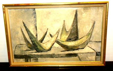 The appraiser, as I suspect a lot of them do, went to his colleagues, and probably the Internet.  The artist wasn’t famous, but he had a following- and produced work that had its niche.  It was a mid-20th century American work. He was well known enough for a couple of pieces to have gone to auction in the past. This canoe number, wasn’t his best or his most creative, but the AR appraiser estimated, at auction would go for about $125,000. I think the family decided to like it just a little bit more after that experience!