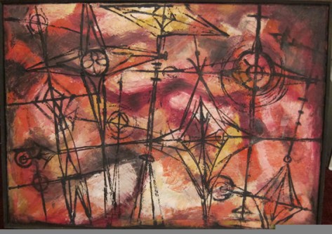 I don’t have any information on the painting; how large it is, from what materials it was created or who owns it.  All I have is this little scan of a PDF from a 5-year old magazine. Under Missing Work, there is mention of “Regatta”, exhibited in 1957. I have a sneaking suspicion that what was a working exhibit title may have been renamed something else. Belmont Harbor is a regatta of sailboats. Could they be the same painting?  One of her students owns a piece called Gray Mountains, and Black Mountain is a missing work. I don’t know if these are revised titles or are completely different or similar theme paintings.